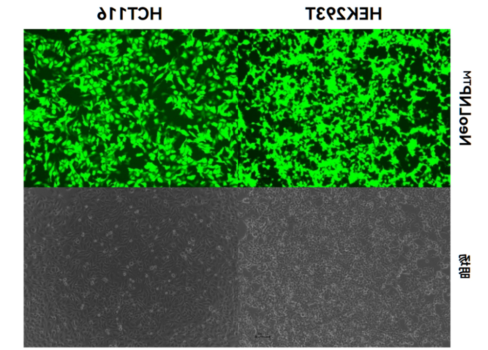 * 使用96孔板,按每孔100ng eGFP circRNA进行细胞转染,24h后进行荧光拍摄。